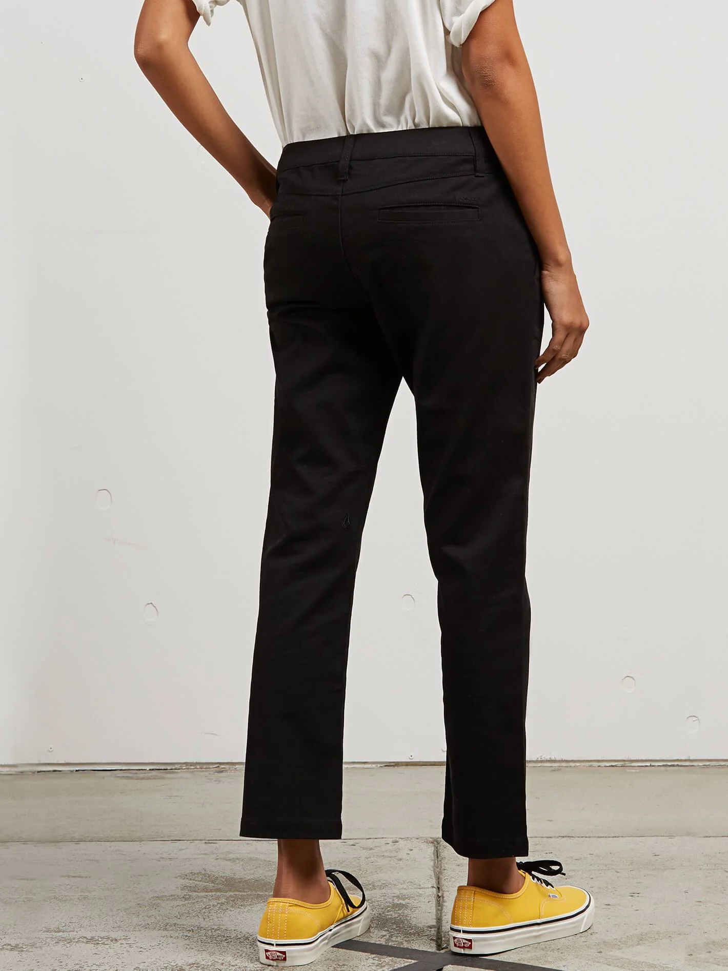 Caractéristiques : •Pantalon chino avec fermeture à agrafe•Fermeture zippée• Poche italiennes sur le devant et poche passepoilées à l'arrière•Bande en biais dans la ceinture, moitié dans le même tissu et moitié en popeline rayée• Badge en faux cuir Volcom au-dessus de la poche arrière et Stone brodé derrière le genou•Entrejambe 69 cm et 76 cm• 22 cm de l'entrejambe à la taille